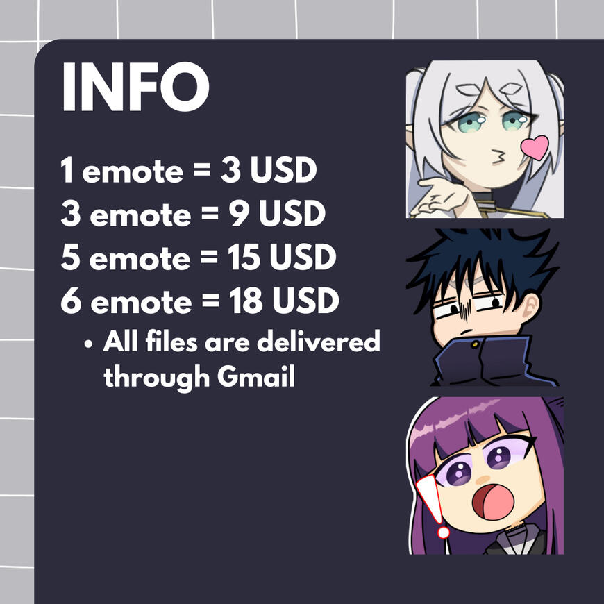 I am a 2D artist who does Emotes, Bust-ups, and Custom Requests.